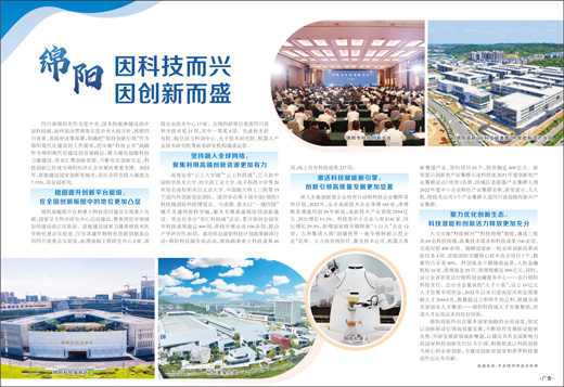 四川省綿陽(yáng)市作為黨中央、國(guó)務(wù)院批準(zhǔn)建設(shè)的中國(guó)科技城,始終堅(jiān)決貫徹落實(shí)黨中央大政方針,按照四川省委、省政府決策部署,明確把“堅(jiān)持創(chuàng)新引領(lǐng)”作為綿陽(yáng)現(xiàn)代化建設(shè)的工作要求,把實(shí)施“科技立市”戰(zhàn)略作為綿陽(yáng)現(xiàn)代化建設(shè)的首要路徑,著力強(qiáng)化戰(zhàn)略科技力量建設(shè)、有效匯聚創(chuàng)新資源、不斷優(yōu)化創(chuàng)新生態(tài),科技創(chuàng)新已經(jīng)成為綿陽(yáng)經(jīng)濟(jì)社會(huì)發(fā)展的重要支撐。2022年,獲批建設(shè)國(guó)家創(chuàng)新型城市,全社會(huì)研發(fā)投入強(qiáng)度達(dá)7.15%,居全國(guó)前列。